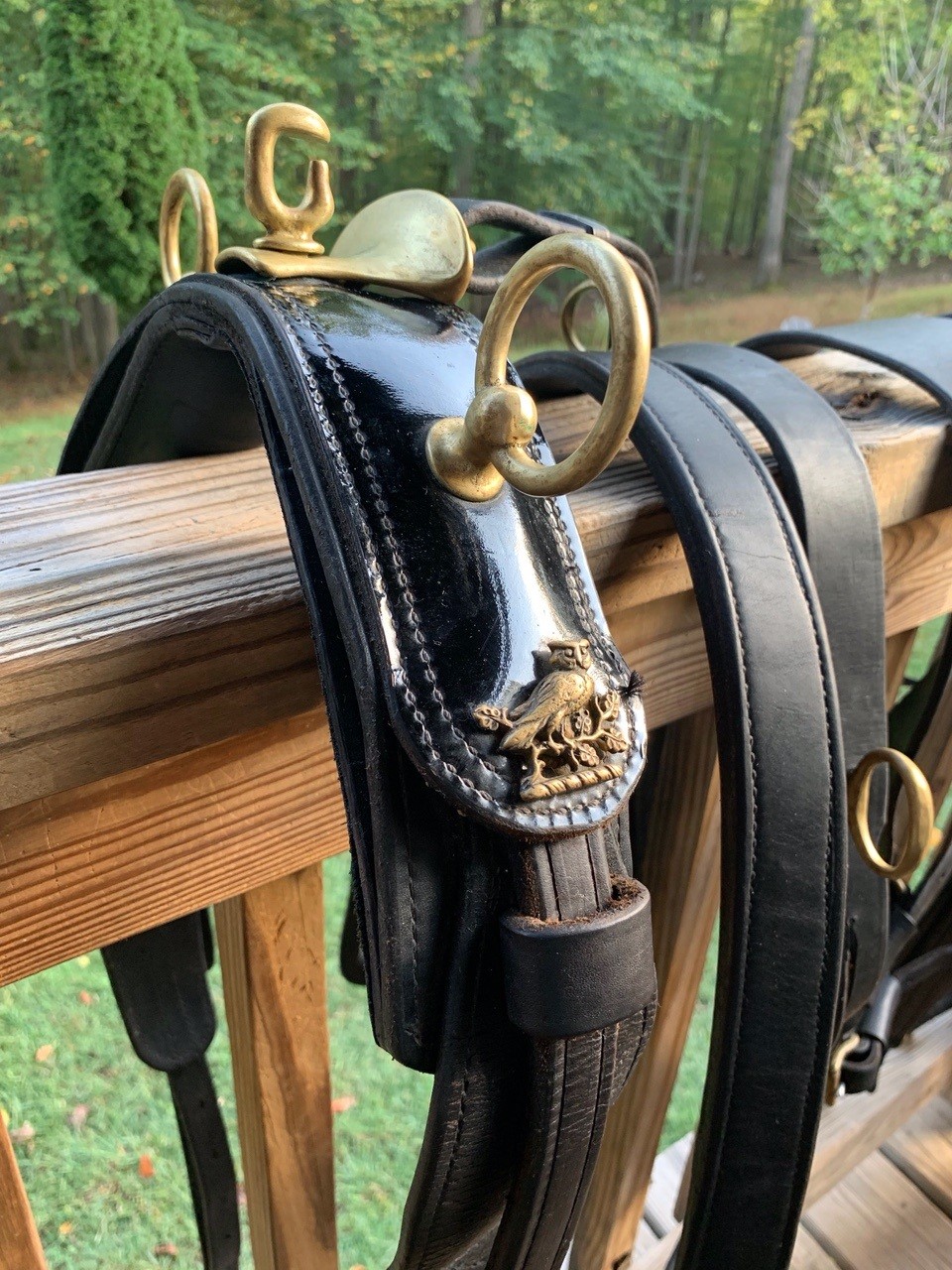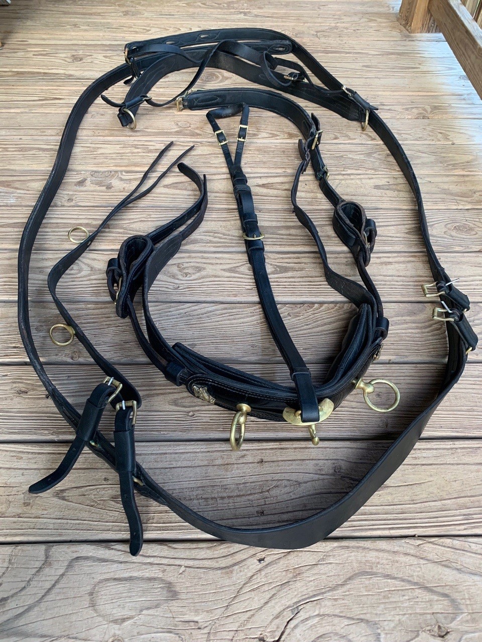 The harness is in excellent condition; with supple leather that has been meticulously cared for. It was made for a 15.1 H Arab. But also used extensively on a 15.3 H Draft X; with included extender straps.