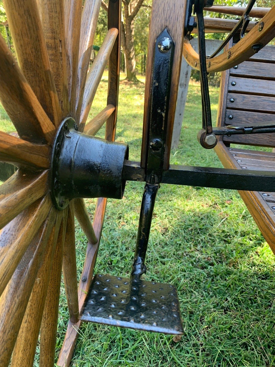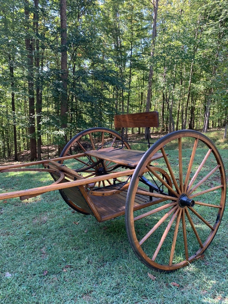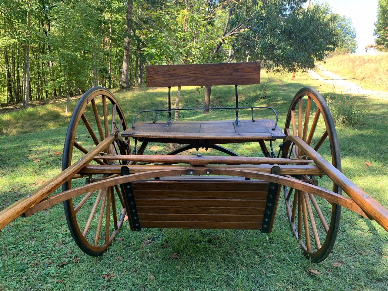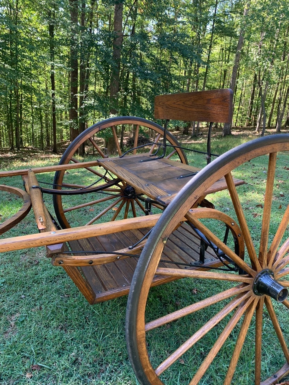 Solid oak construction - Amish made, 48” rubber edged wheels - always kept under roof- excellent condition